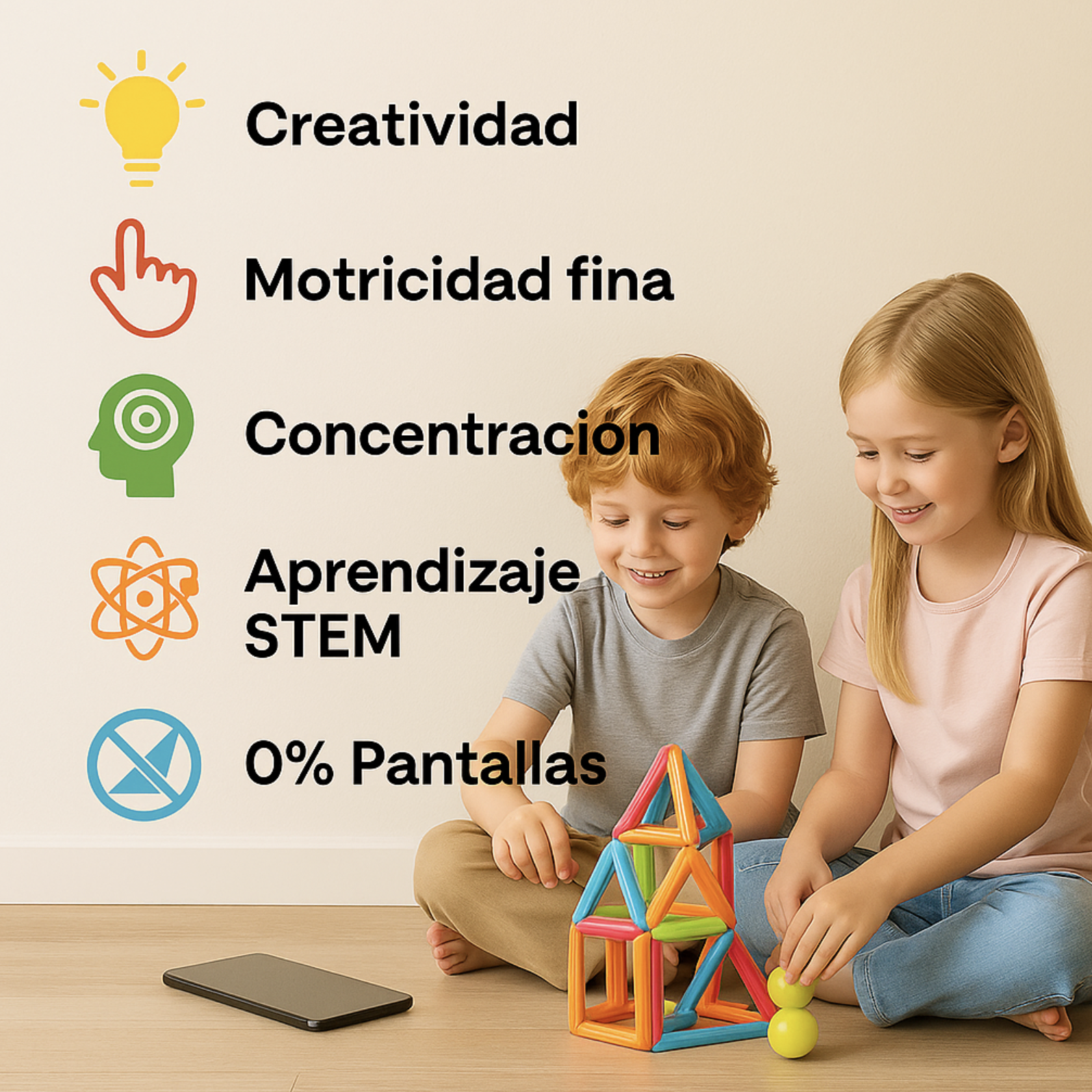 ¡Nuestros Sticki Blocks™ te dan la solución perfecta! El set 2x1 de bloques magnéticos educativos que transforma el tiempo de juego en aprendizaje real. Ideal para mantener a los chicos entretenidos, estimulados y alejados del celular.